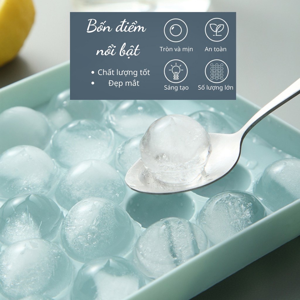Khuôn đá bi hữu dụng với chất liệu nhựa an toàn, tạo hình thạch cầu hấp dẫn từ hoa quả, nước thạch và sữa tươi giải khát mát lành.