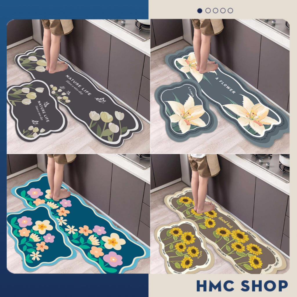 Thảm lau chân nhà bếp cao cấp, chống trượt với mặt nhung mềm mịn, thấm nước nhanh và đế cao su siêu bền.